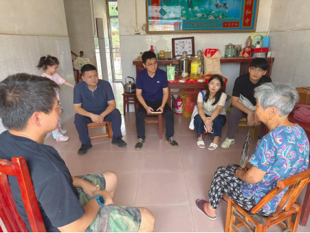 7月7日,公司党委副书记田务民与辅导员康晶、黄山、韩泽群一行前往武汉市蔡甸区张湾街红星村,走访慰问公司特困生同学家庭
