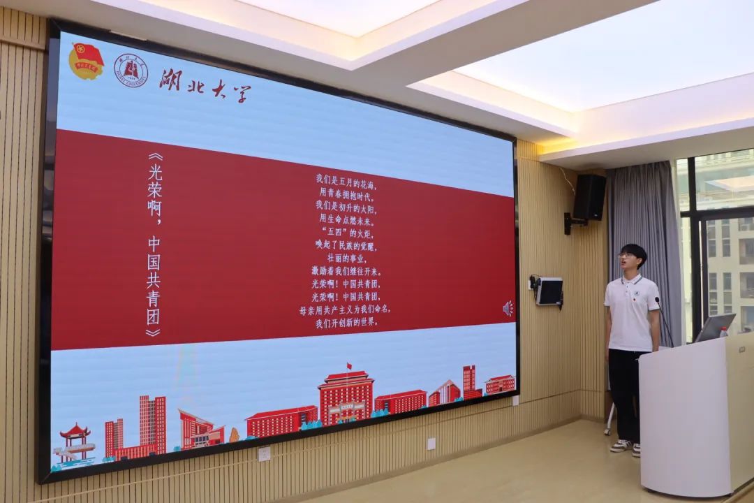 在主持人微电子公司团委组织部习宇祥同学的带领下全体参会人员起立齐唱《光荣啊,中国共青团》开班仪式正式拉开帷幕。