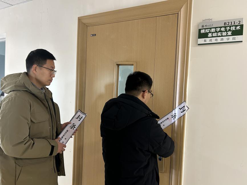 为迅速落实联合检查组整改指示,扎实推进节前安全闭环管理,当日下午李根主任与公司安全专员郭鹏老师开展寒假节前实验室安全复核与落实工作。二人对排查出的安全隐患逐一梳理、第一时间通报至各实验室安全责任人,督促限期整改到位;同时规范完成各实验室断水、断电、通风等节前准备工作,对所有实验室统一实施封条管理,从源头遏制安全风险,确保假期实验室安全防控无死角、无盲区、无漏洞。